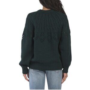 BRAND NEW Color: Deep Emerald cable knit detail, ribbed cuffs and hem, baby ribbed collar long sleeve mock neck mid-weight knit merino wool imported dry clean