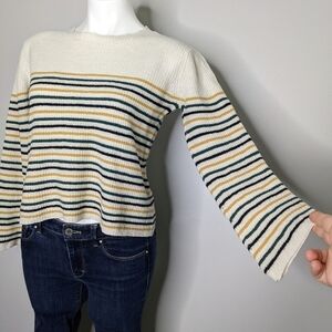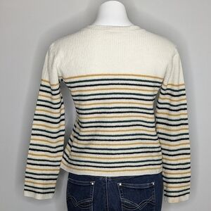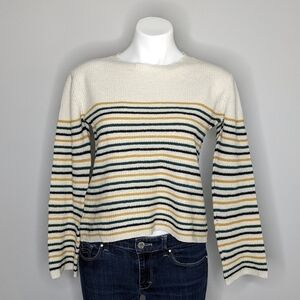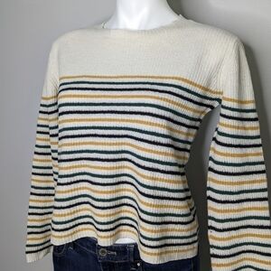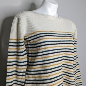 A.L.C Meryl yellow green striped wool blend sweater M. Stain on the cuff of one sleeve, selling AS IS and have not attempted to remove the stain (see photo)