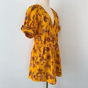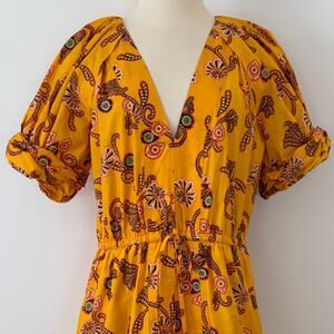 A.L.C. Mia Printed Mini Dress Short Puffed Sleeves Rolled Cuffs Limone Multi 12