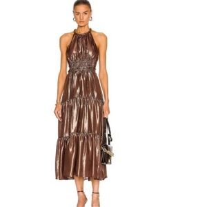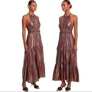 ALC Elara Tiered Silk Metallic Bitter Chocolate Maxi Dress.