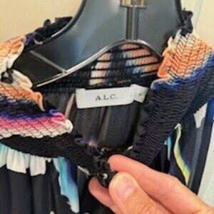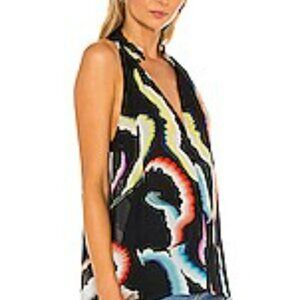A.L.C. Woman’s Silk Sleeveless Minelli Top Color Midnight Multi Abstract Size 4