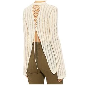 NEW ALC Miguel Back Lace Up Pullover Sweater Cream Beige