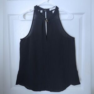 Beautiful Moran silk halter neck / racerback with keyhole slit and striking brass tone hardware at the neck. Lightweight, airy, and so versatile! Size 2, excellent preloved condition.