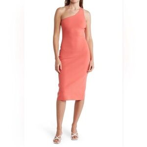 A.L.C / NWT Colby one shoulder asymmetric Bodycon dress midi rouge coral M