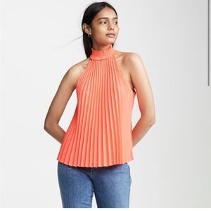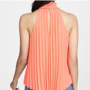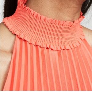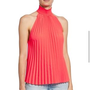 A.L.C. NWT Imani Top 4 Pleated Mock Neck Bright Coral Sleeveless Pullover Blouse