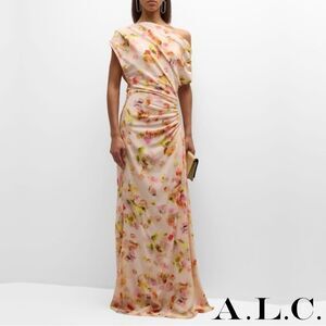 A.L.C. **NWT** Poppy Ballad Floral Off The Shoulder Ruched Stretch Silk Gown