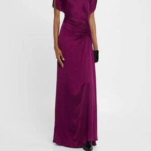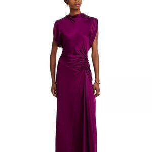 A.L.C. Nadia Satin Bias Cut Ruched Draped Gown Jewel Purple