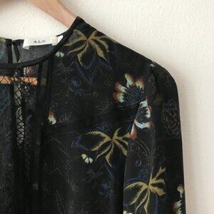 A.L.C. "Noemi" silk blouse in floral print with lace inset.