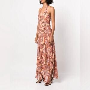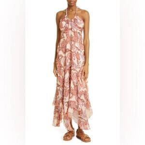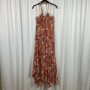 A.L.C. Nude Peach Multi Silk Amina Handkerchief Hem Midi Dress Sz.8 NWT