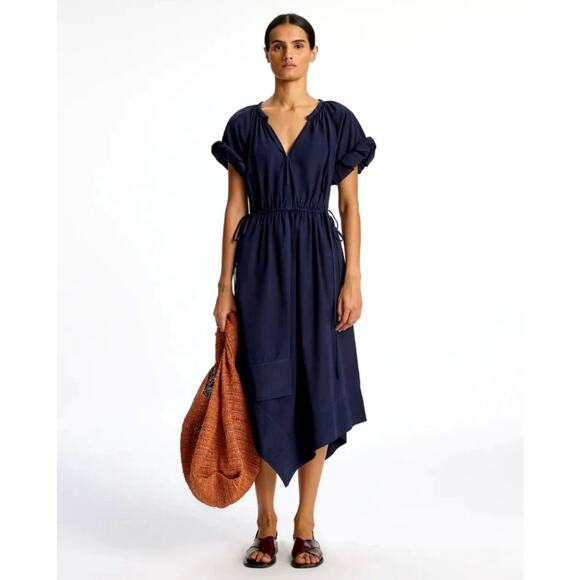 A.L.C. Odin Dress in Maritime Navy Blue Size 8 Poplin Midi Asymmetric 100% Cotton brand new with tags. MSRP: $465. Sold out online
