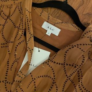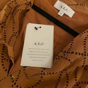 Elegant A.L.C. dress with a unique pattern. Features long sleeves and a flowing silhouette. Perfect for any occasion.