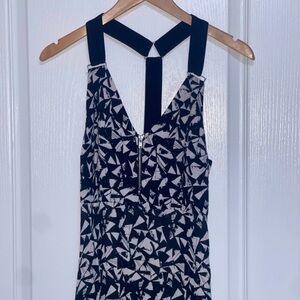 Stylish black and white patterned maxi dress. Sleeveless design with a V-neckline.
