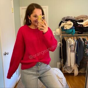 I adore gorgeous berry pink magneta chunky alpaca kid mohair blend crewneck sweater from designer A.L.C