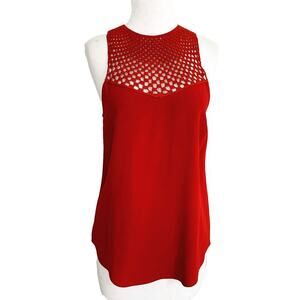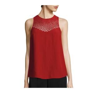 A.L.C Quinn Crochet Blouse Top Red Viscose Blend High Neck Sleeveless Sz 2