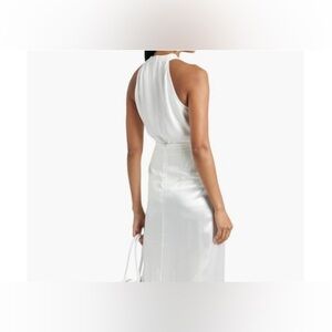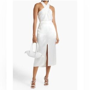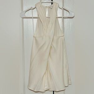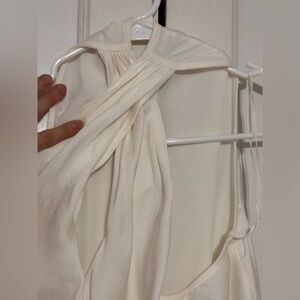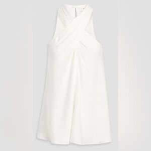 Top, Crepe, Gathered, Twist-front, Crossover straps, Button-fastening keyhole at back, Non-stretchy fabric, Mid-weight fabric.