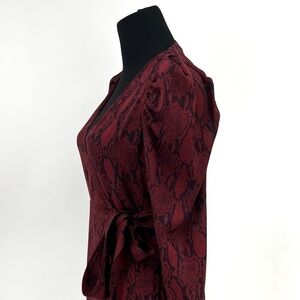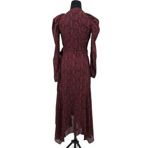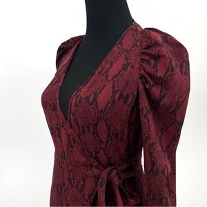 ALC RED SNAKESKIN SILK LONG PUFF SLEEVE RED HOLIDAY TIANNA WRAP MIDI DRESS