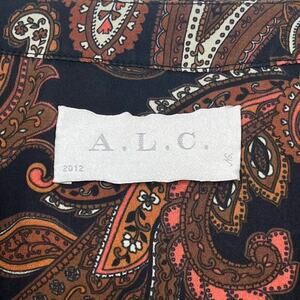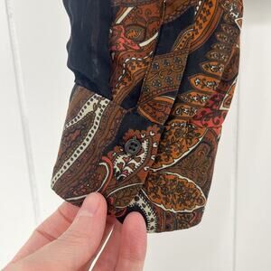 A.L.C. Racci Print Silk Blouse Sheer Long Sleeve Paisley Size Medium Brown Black
