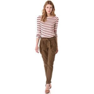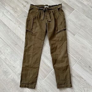 Gorgeous slim-cut utility-inspired pants by A.L.C. “Randall” style in olive green 100% heavy cotton canvas with paper bag waist.