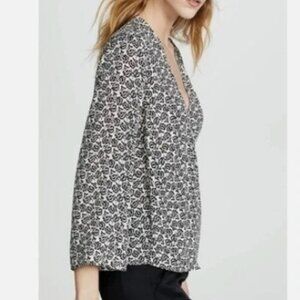 A.L.C. Ray Silk Wrap Blouse – Black & White Boho Floral – Size 4 – NWT