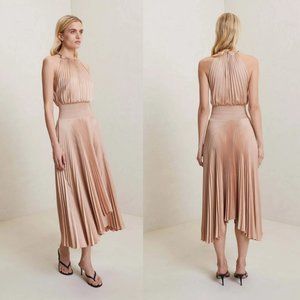 A.L.C. Renzo Asymmetric Pleated Midi-Dress Sz 8 Bella Halter Neck Smock Waist