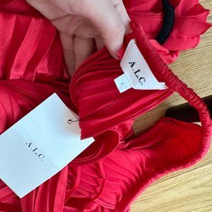 A.L.C. Renzo II Asymmetric Pleated Midi-dress Red Halter Neckline Smocked NWT