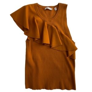 ALC Ribbed Ruffle Tank Top. Color saffron. Size L. 66% viscose 32% polyester 1% nylon 1% elastane. Pre-owned in great condition.