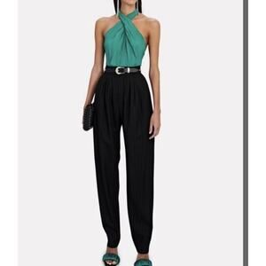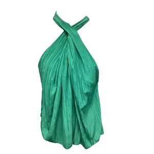A.L.C. Rio Cross Front Plissé Top Green 10 M Halter Blouse Sleeveless $350