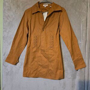 A.L.C. Rust Brown Cotton Long-Sleeve Dress Lace-Up Detailing/ Button Closure 2