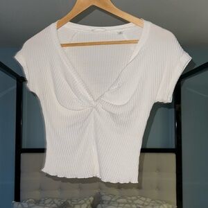 A.L.C. Sabina Twist Front White Crop Top Ribbed Knit Scalloped Edge Vneck Small