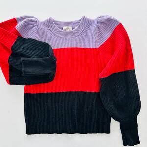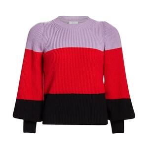 A.L.C. Sammy Puff Sleeve Sweater Size Medium Colorblock Purple Red Wool Cashmere