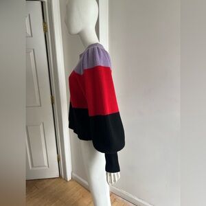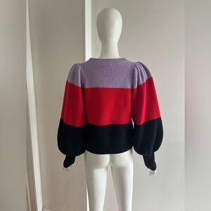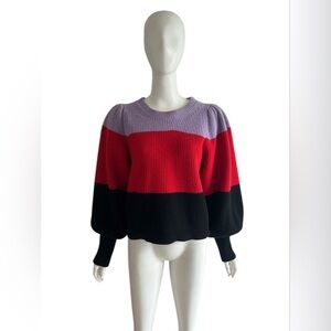 A.L.C. Sammy Puff Sleeve Sweater Size Medium Colorblock Purple Red Wool Cashmere