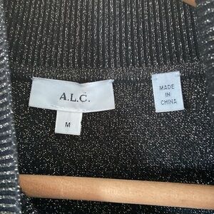 The A.L.C. Samuel Puff Sleeve Dress is a stylish mini dress known for its bodycon silhouette and distinctive puff sleeves. Crafted from a viscose and polyester blend, it features a high neckline and rib knit trim, with metallic threading throughout that adds a subtle shimmer.