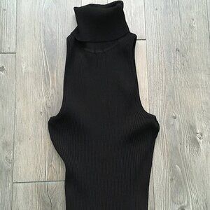 Sleeveless turtleneck midi dress in a super stretchy, rib knit fabric. Foldover neckline. Unlined. Excellent condition, like new.