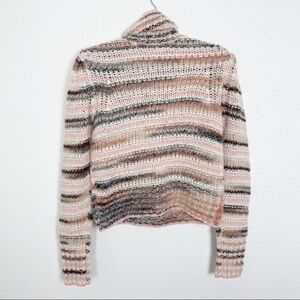 Turtleneck, Long sleeve, knit, striped space dye print. Wool, alpaca, polyamide- Dry clean only. Cream, pink, gray, tan. Casual, designer, work, fall, winter, cozy, neutral.