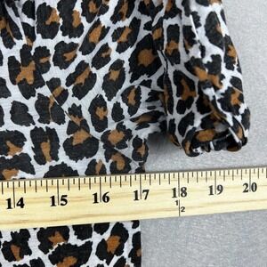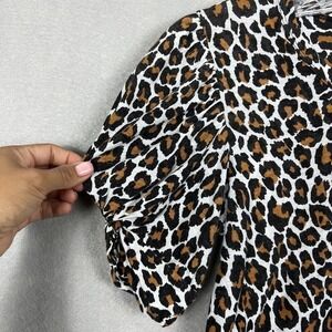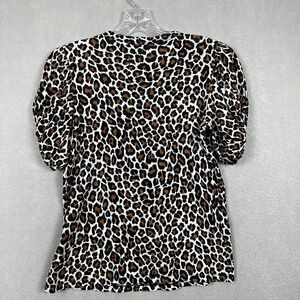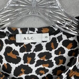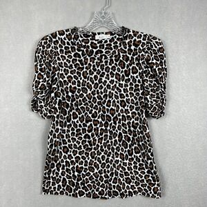 A.L.C Shirt Top Womens XS Leopard Print Puff Sleeve Crewneck Tee Cotton Pullover.