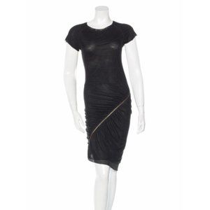 Black A.L.C. short sleeve knee-length dress with scoop neck and zip panel detail at front.