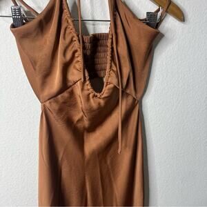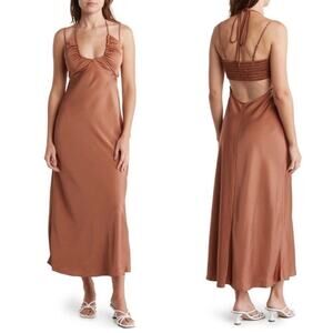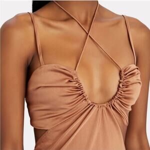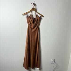 A.L.C Sienna Halter Neck Smocked Satin Midi Dress Womens Size 2