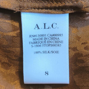ALC Silk Animal Print Mandarin Collar Long Sleeve Button Down Blouse Top Size 8
