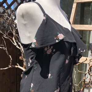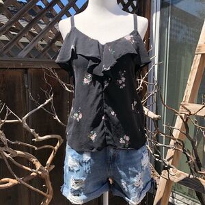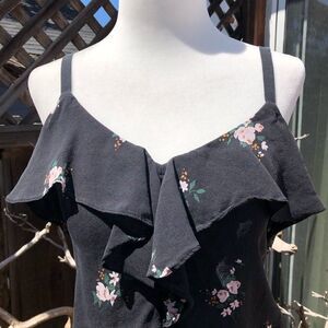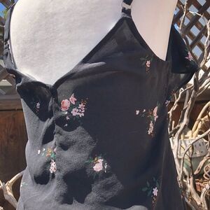 A.L.C. Silk Floral Black Spaghetti Strap Tank Top