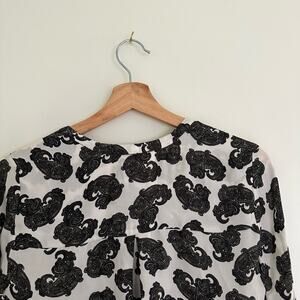 A.L.C Silk Paisley Print Button Up Blouse Black White