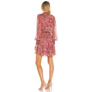 A.L.C Silvie dress, ALC mini dress, ALC silk dress, pink floral dress, smocked waist dress, ruffle hem dress, metallic floral dress, ALC size 2, chiffon dress, long sleeve mini dress, designer dress, luxury womenswear, occasion dress