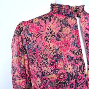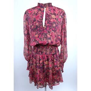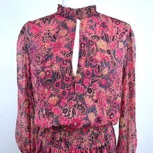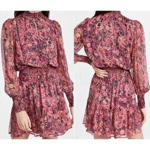 A.L.C Silvie Silk Mini Dress Size 10 Metallic Smocked Pink Floral Feminine Fairy