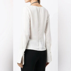 A.L.C. top off-white, gathered detailing, cut-out detailing, long sleeves, flared cuffs and curved hem.
