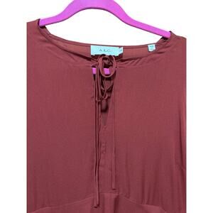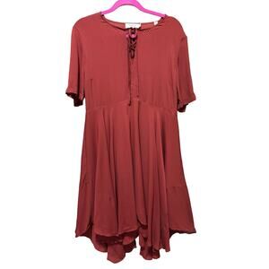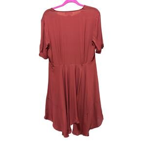 Keywords: A.L.C. silk dress, rust red mini, handkerchief hem, fall wedding guest dress, Thanksgiving outfit, holiday cocktail dress, winter party dress, formal silk midi, elegant short sleeve dress, timeless designer piece, size 10