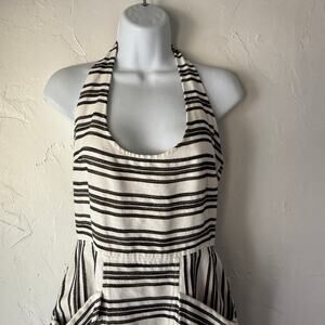 A.L.C. Striped Halter Dress Size 8 Black White Pocket Mini Dress Cotton Viscose