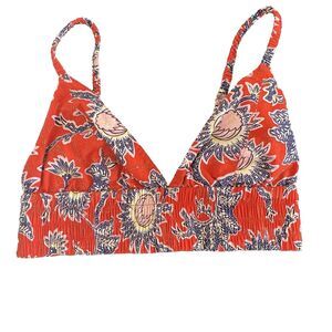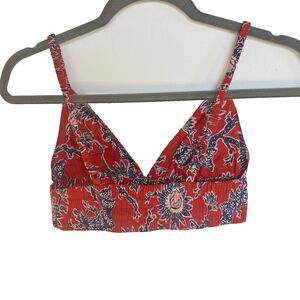 A.L.C. Style Lana Apple Red Batik-Floral Printed V Neck Crop - Bra let Top Size 0