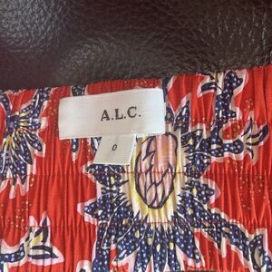 A.L.C. Style Lana Apple Red Batik-Floral Printed V Neck Crop Top Size 0