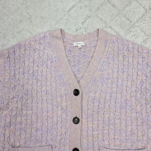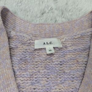 A.L.C. Sweater Womens XS Purple Beige Jacks Cardigan Honeycomb Cable Knit Wool