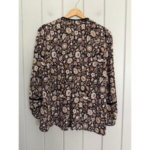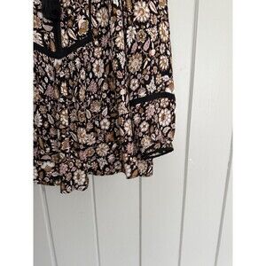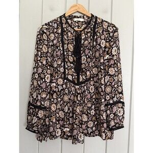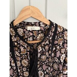 A.L.C. Top 6 Black Pink Floral Silk Long Sleeve Peasant Blouse Tassel Boho