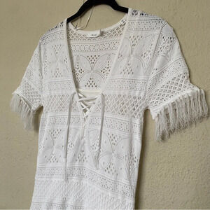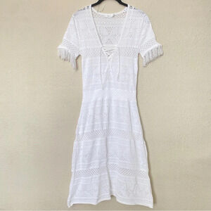 A.L.C Trevi Crochet Knit Fringe Sheath Dress white size M